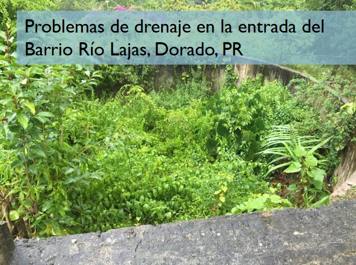 • Mejoras al sistema de drenaje del barrio. Se sugieren mejoras al sistema de drenaje pluvial para mitigar el problema de inundación en la entrada que conecta el barrio con la carr. 165. Esa es la única entrada al Barrio.
